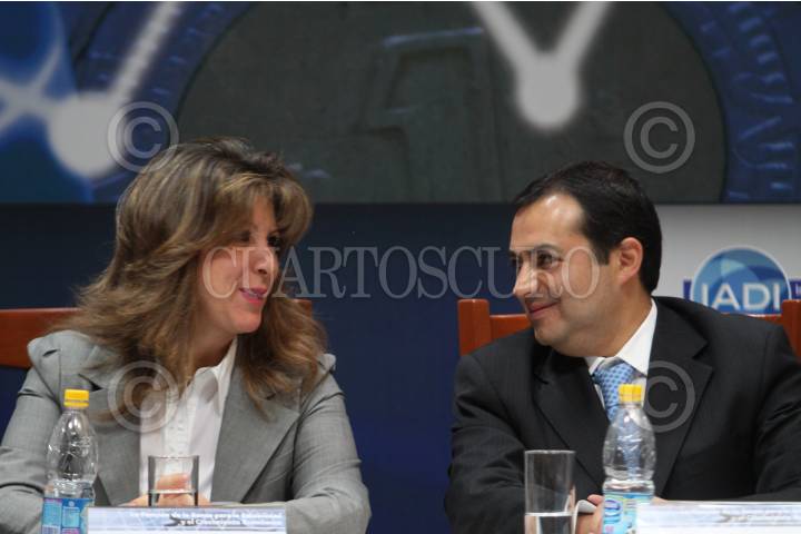 MÉXICO, D.F., 10JUNIO2010.- Ma. Teresa Fernandez, titular del Instituto para la Protección al Ahorro Bancario conversa con Ernesto Cordero, secretario de Economía durante el foro: La Función de la Banca para la Estabilidad y el Crecimiento Económico que se realizo en el Club de Banqueros. FOTO: RODOLFO ANGULO/CUARTOSCURO.COM