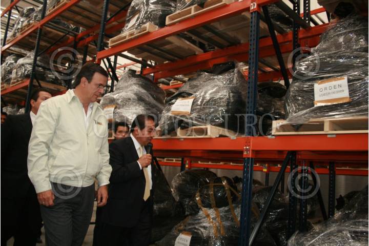 MÉXICO D.F., 30ENERO2009.- Marcelo Ebrard Jefe de de Gobierno hace un recorrido por el recinto fiscal de la unidad de inteligencia financiera, que tiene la finalidad de fortalecer la introduccion ilegal de mercancías , en la imágen el jefe de gobierno observa mercancía confiscada. FOTO:SÁSHENKA GUTIÉRREZ/CUARTOSCURO.COM
