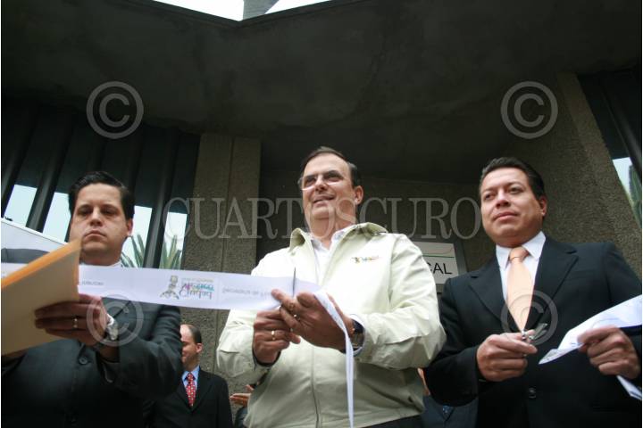 MÉXICO D.F., 30ENERO2009.- Mario Delgado Secretario de Finanzas del GDF, Marcelo Ebrard Jefe de Gobierno del Distrito Federal Alfredo Esteba Salinas ex diputado por convergencia conversan durante la inaguración de la unidad de inteligencia financiera, que tiene la finalidad de fortalecer la introduccion ilegal de mercancías FOTO:SÁSHENKA GUTIÉRREZ/CUARTOSCURO.COM