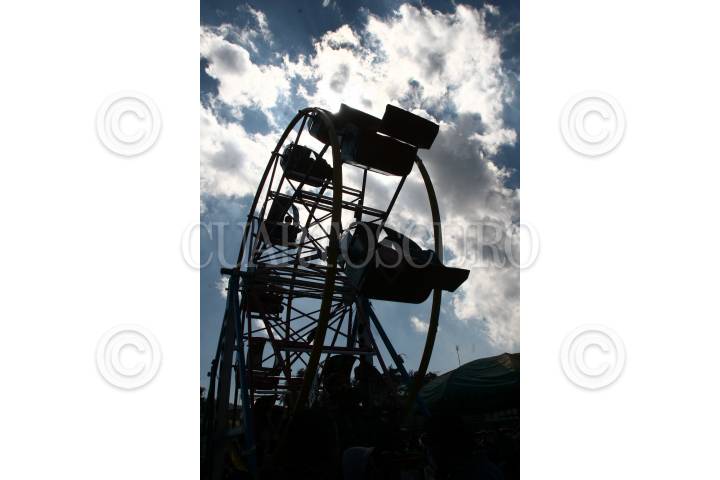 MÉXICO, D.F., 16ENERO2010.- La silueta de una Rueda de la Fortuna contrasta con las nubes y el cielo azul de esta tarde en la ciudad. FOTO: SAUL LOPEZ/CUARTOSCURO.COM