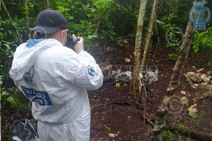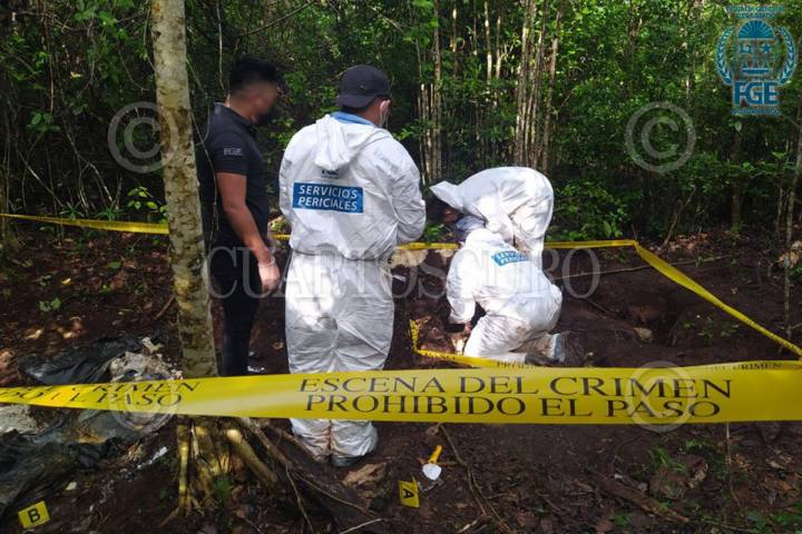 Peritos trabajan para la localización y traslado de restos óseas encontrados en una fosa en el municipio de Benito Juárez en Cancún, Quintana Roo.