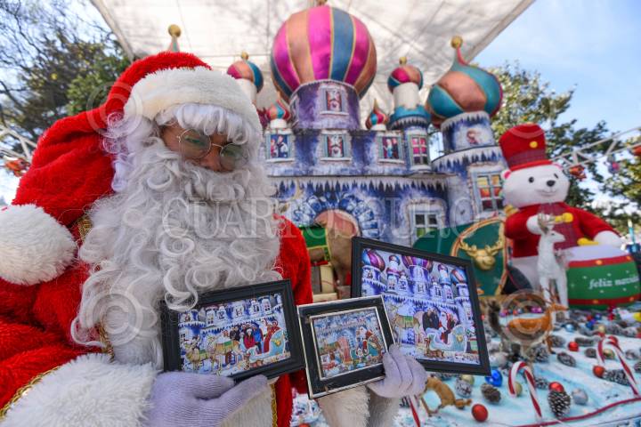 TOLUCA, ESTADO DE MÉXICO, 21DICIEMBRE2023.- En el Parque Cuauhtémoc Alameda Central en Toluca cada año se colocan stands para tomarse la tradicional fotografía con Santa Claus, Guillermo Arzate lleva más de 35 años dedicándose a tomar la foto del recuerdo a las familias, se instalan desde el 17 de diciembre y finalizan hasta el 6 de enero con los reyes Magos, la gente puede visitarlos desde las 11 de la mañana hasta la 8 de la noche y ofrecen tres tamaños de fotografía, en estos días sus clientes han sido pocos pero esperan que en los siguientes días mejore el trabajo. FOTO: CRISANTA ESPINOSA AGUILAR /CUARTOSCURO.COM