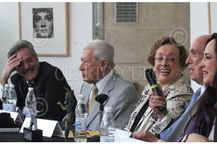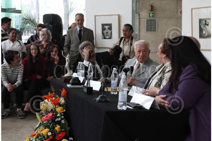 CIUDAD DE MÉXICO, 07SEPTIEMBRE2016.- En la imagen, Mercedes Pascual y David Antón durante el homenaje. La muestra está abierta al público general en el vestíbulo del Teatro de las Artes del Cenart. FOTO: MARÍA JOSÉ MARTÍNEZ /CUARTOSCURO.COM
