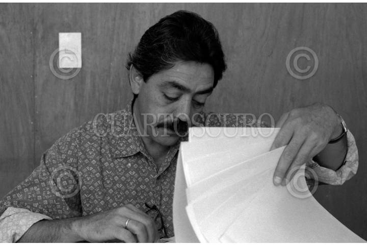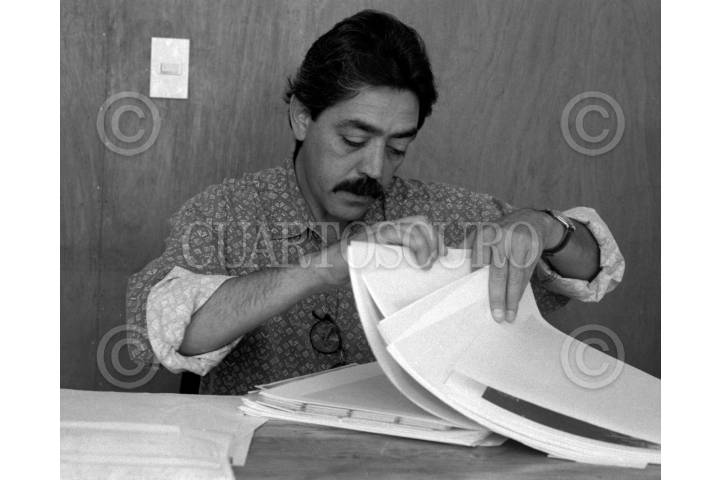 El equipo de CUARTOSCURO lamenta el fallecimiento del maestro y fotógrafo Ernesto Machado (09 de febrero de 2022). El fundador de la Escuela Activa de Fotografía deja un gran legado para sus estudiantes y miembros del medio. Nos unimos a la pena de familiares y amigos. En la imagen de archivo Ernesto Machado de visita oficial a Cuartoscuro fotografiado por Pedro Valtierra (1993).