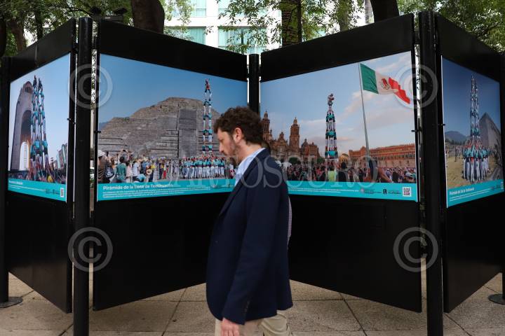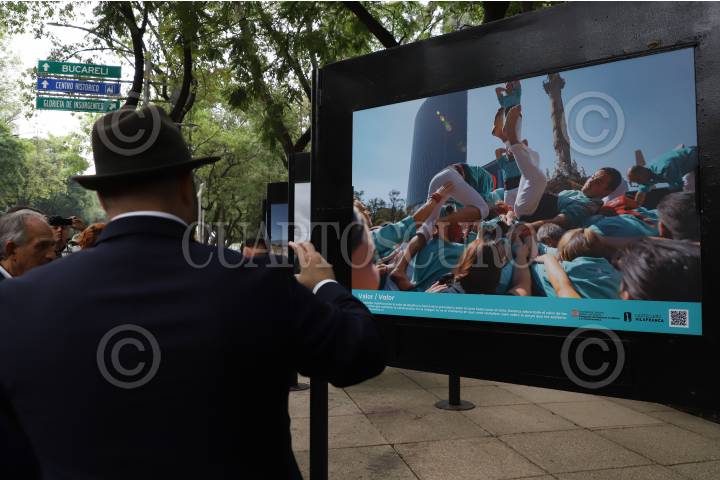 CIUDAD DE MÉXICO, 05SEPTIEMBRE2024.- Este medio día se inauguró la exposición, Tocando el Cielo de México, la cual consta de fotografías que retratan las torres humanas realizadas por Los Castellars de Villafranca, una organización originaria de Calatuña y que por su 75 aniversario visitó el país para hacer demostraciones de sus rutinas. FOTO: DANIEL AUGUSTO/ CUARTOSCURO.COM