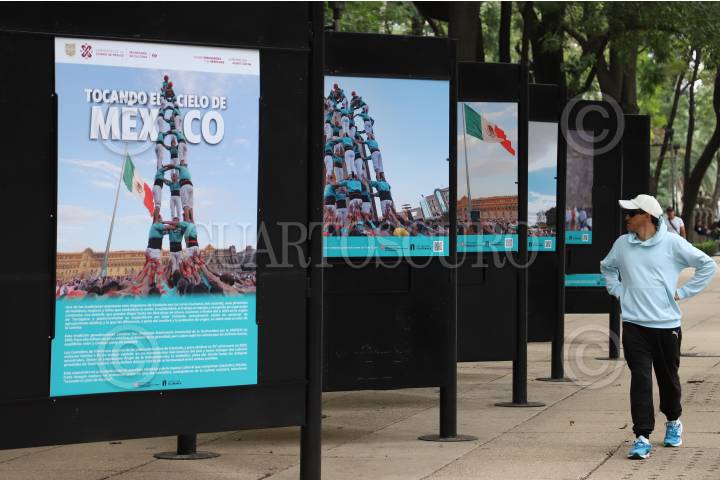 CIUDAD DE MÉXICO, 05SEPTIEMBRE2024.- La exposición Tocando el Cielo de México, que consta de distintas fotografías de Los Castellars de Villafranca elaboran sus torres humanas durante su visita al país, podrá observarse en Paseo de la Reforma entre la Glorieta del Ahuehuetes y Av. Insurgentes. FOTO: DANIEL AUGUSTO/ CUARTOSCURO.COM