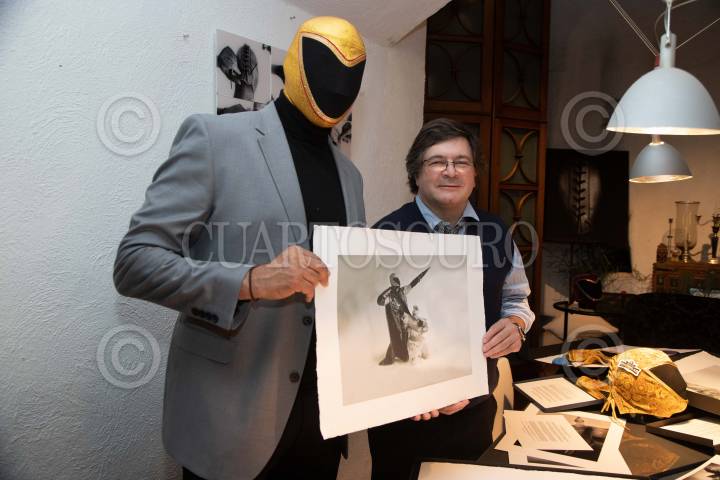 CIUDAD DE MÉXICO, 24OCTUBRE2023.- Presentación de la carpeta fotográfica Máscara vs Cámara, de Juan José Díaz Infante y con la presencia del luchador Tinieblas Jr. quien participó en la creacion de la muestra. FOTO: EDGAR NEGRETE LIRA/CUARTOSCURO.COM