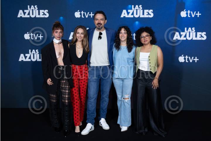 CIUDAD DE MÉXICO, 09JULIO2024. Natalia Téllez, Barbara Mori, Fernando Rovzar, Ximena Sariñana y Amorita Rasgado durante una sesión fotográfica con el elenco de la serie de Apple TV "Las Azules", un drama policiaco situado en la decada de los 70s y 80s. FOTO: EDGAR NEGRETE LIRA/CUARTOSCURO.COM