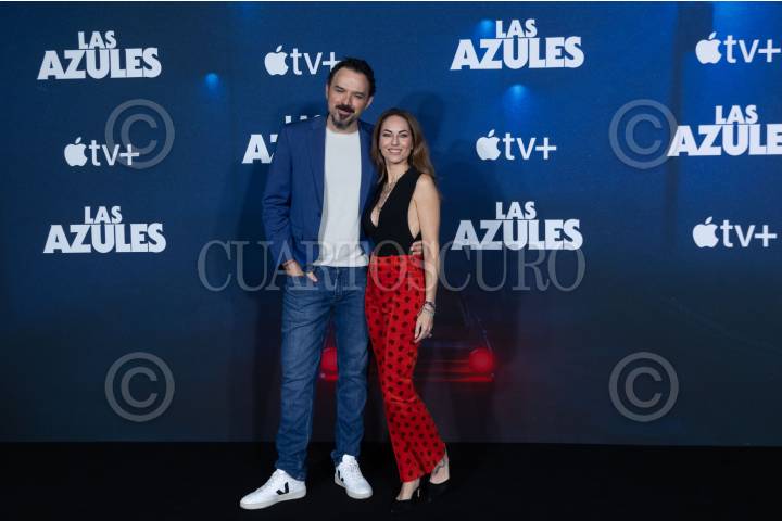 CIUDAD DE MÉXICO, 09JULIO2024. Fernando Rovzar y Barbara Mori durante una sesión fotográfica con el elenco de la serie de Apple TV "Las Azules", un drama policiaco situado en la decada de los 70s y 80s. FOTO: EDGAR NEGRETE LIRA/CUARTOSCURO.COM
