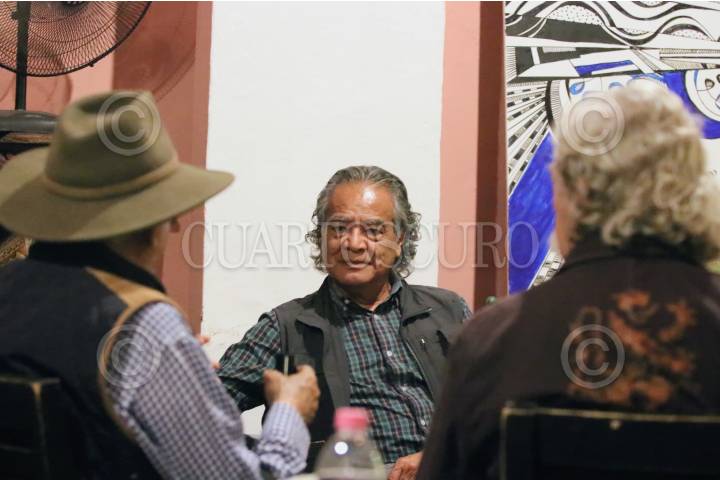 CUERNAVACA, MORELOS, 25OCTUBRE2024. Pedro Valtierra Ruvalcaba, fotoperiodista y director de Cuartoscuro, Agencia de Fotografía y Editora, visito la capital de Morelos. En la imagen, con el artista plástico Leonel Maciel. FOTO: MARGARITO PÉREZ RETANA/CUARTOSCURO.COM