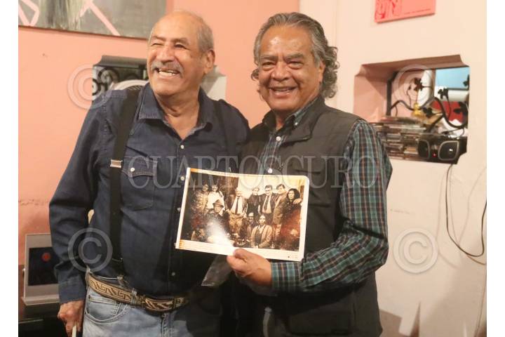 CUERNAVACA, MORELOS, 25OCTUBRE2024. Pedro Valtierra Ruvalcaba, fotoperiodista y director de Cuartoscuro, Agencia de Fotografía y Editora, visito la capital de Morelos. En la imagen , con el fotógrafo Enrique Torres Agaton. FOTO: MARGARITO PÉREZ RETANA/CUARTOSCURO.COM