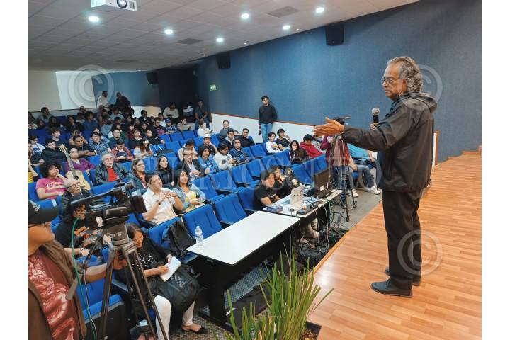 SAN LUIS POTOSÍ, SAN LUIS POTOS, 28FEBRERO2025.- El fotoperiodista mexicano Pedro Valtierra Ruvalcaba, fundador de la Revista y Agencia Cuartoscuro, asistió a la celebración de los 40 años de la Facultad de Ciencias de la Comunicación de la Universidad Autónoma de San Luis, en dónde dicto una conferencia titulada “Reflexiones sobre fotoperiodismo”. FOTO: MARCELO PALACIOS/CUARTOSCURO.COM