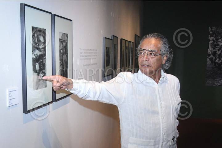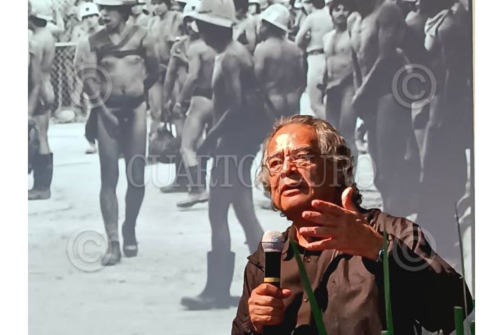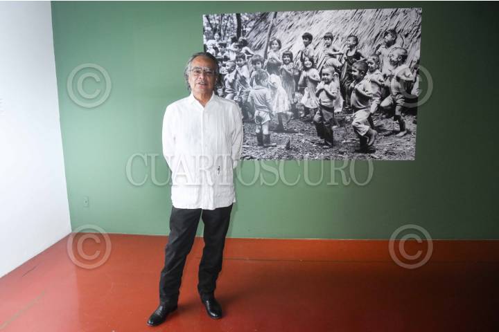 CIUDAD DE MÉXICO, 10ABRIL2025.- Pedro Valtierra, fotoperiodista y director de la Agencia Cuartoscuro, durante la inauguración de su exposición "Volver a la tierra del Quetzal" que estará en exhibición hasta el próximo 13 de julio en el Centro de la Imagen. La muestra de más de noventa fotografías que integran tres reportajes del conflicto armado interno que se vivió en Guatemala a inicios de 1980. FOTO: MARIO JASSO/CUARTOSCURO.COM