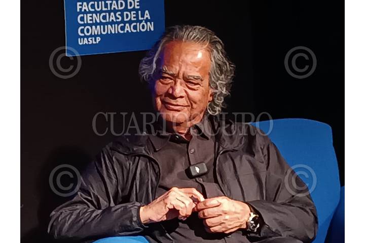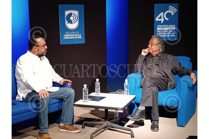 SAN LUIS POTOSÍ, SAN LUIS POTOS, 28FEBRERO2025.- El fotoperiodista Pedro Valtierra Ruvalcaba, fundador de la Agencia y Revista Cuartoscuro, dictó la conferencia titulada “Reflexiones sobre fotoperiodismo” además de ser entrevistado en el estudio de televisión de la facultad. Lo anterior, En el marco de la celebración de los 40 años de la Facultad de Ciencias de la Comunicación de la Universidad Autónoma de San Luis.  FOTO: MARCELO PALACIOS/ CUARTOSCURO.COM