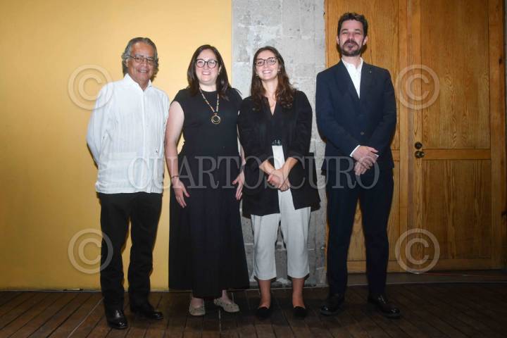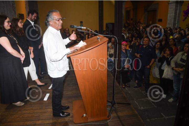 CIUDAD DE MÉXICO, 10ABRIL2025.- Pedro Valtierra, fotoperiodista y director de la Agencia Cuartoscuro, durante la inauguración de su exposición "Volver a la tierra del Quetzal" que estará en exhibición hasta el próximo 13 de julio en el Centro de la Imagen. La muestra de más de noventa fotografías que integran tres reportajes del conflicto armado interno que se vivió en Guatemala a inicios de 1980. Lo acompañan: Livier Jara García, directora del Centro de la Imagen; Ilaria Giacomi, directora del Instituto Italiano de Cultura en México, y Manolo Márquez, director de la Academia y Galería Leica en México. FOTO: MARIO JASSO/CUARTOSCURO.COM