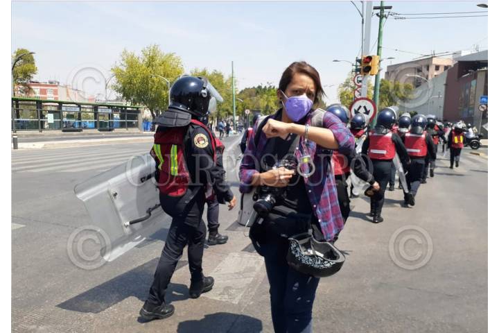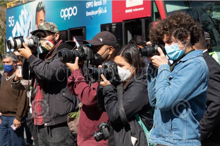 Fotoperiodistas durante una cobertura en avenida Juárez.