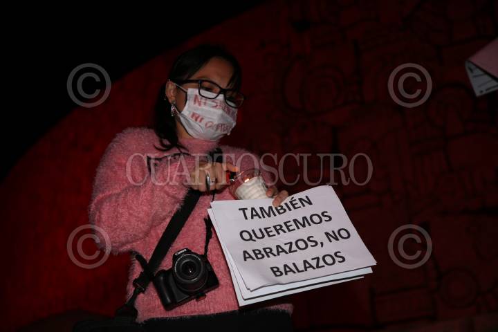 Periodistas de Michoacán se sumaron a la jornada nacional de protesta por los homicidios de sus colegas Margarito Martínez, Lourdes Maldonado y José Luis Gamboa. En la imagen Cinthia Arroyo durante la protesta.