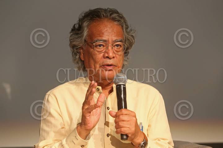 Pedro Valtierra Director de la Agencia Cuartoscuro, durante el conversatorio sobre fotoperiodismo que se llevo a cabo en las instalaciones de la Universidad Iteso.