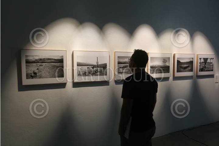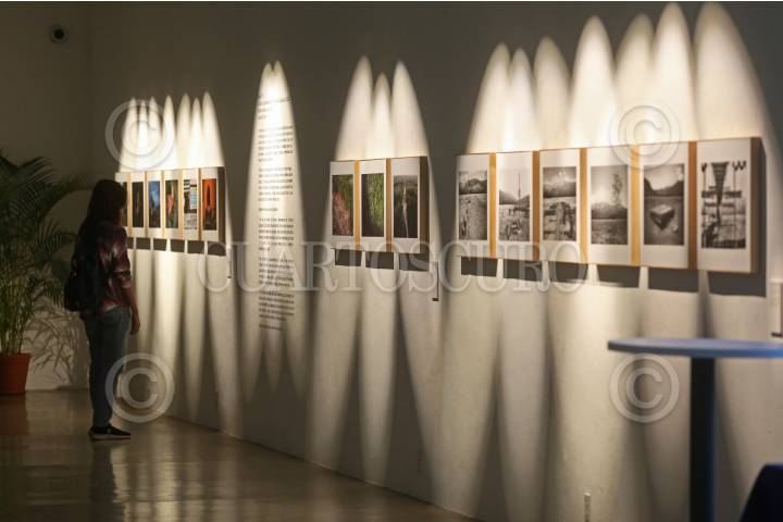 Una persona observa la exposición del concurso latinoamericano de fotografía Cuartoscuro 2022 “Nuestra Huella en el Planta”, que se inauguro esta tarde en las instalaciones de la Universidad Iteso.