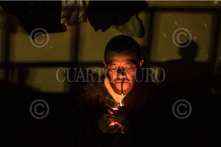 CIUDAD DE MÉXICO, 04NOVIEMBRE2018.- Walter, migrante salvadoreño enciende el último cigarrillo previo a dormir en el albergue instalado en la Ciudad Deportiva. El primer contingente de migrantes en su mayoría provenientes de Honduras, arribaron a la capital del páis paso obligado en su ruta a la frontera norte con EE.UU. En su escala en la ciudad, son atendidos por la Comisión Nacional de Derechos Humanos, Cruz Roja y autoridades gubernamentales que les proveen alimentos durante su estancia. FOTOREPORTAJE: MISAEL VALTIERRA / CUARTOSCURO.COM