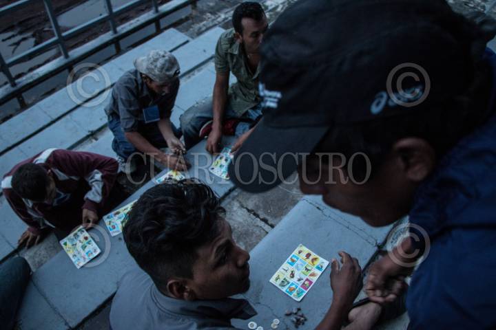 CIUDAD DE MÉXICO, 04NOVIEMBRE2018.- Como forma de entretenimiento, jovenes migrantes juegan a la lotería en el albergue instalado en la Ciudad Deportiva. El primer contingente de migrantes en su mayoría provenientes de Honduras, arribaron a la capital del páis paso obligado en su ruta a la frontera norte con EE.UU. En su escala en la ciudad, son atendidos por la Comisión Nacional de Derechos Humanos, Cruz Roja y autoridades gubernamentales que les proveen alimentos durante su estancia. FOTOREPORTAJE: MISAEL VALTIERRA / CUARTOSCURO.COM