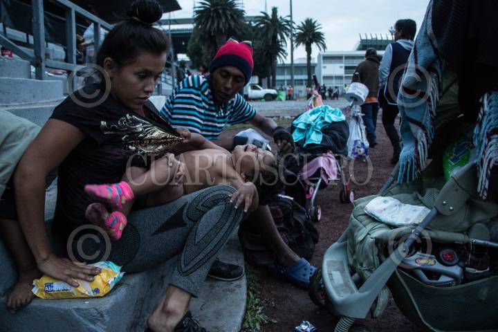 CIUDAD DE MÉXICO, 04NOVIEMBRE2018.- Una familia de migrantes atienden a su pequeña hija en el albergue instalado en la Ciudad Deportiva. El primer contingente de migrantes en su mayoría provenientes de Honduras, arribaron a la capital del páis paso obligado en su ruta a la frontera norte con EE.UU. En su escala en la ciudad, son atendidos por la Comisión Nacional de Derechos Humanos, Cruz Roja y autoridades gubernamentales que les proveen alimentos durante su estancia. FOTOREPORTAJE: MISAEL VALTIERRA / CUARTOSCURO.COM