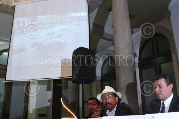 MÉXICO, D.F., 04MARZO2011.- Los fotógrafos Moisés Pablo y JGuadalupe Pérez, así como Luis Felipe Estrada, investigador de la FES Acatlán, durante la presentación del número 106 de la revista Cuartoscuro, dedicado en esta ocasión a la violencia, en el Club de Periodistas. FOTO: ISAAC ESQUIVEL/CUARTOSCURO.COM