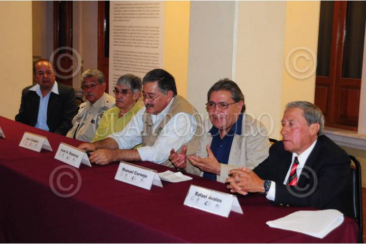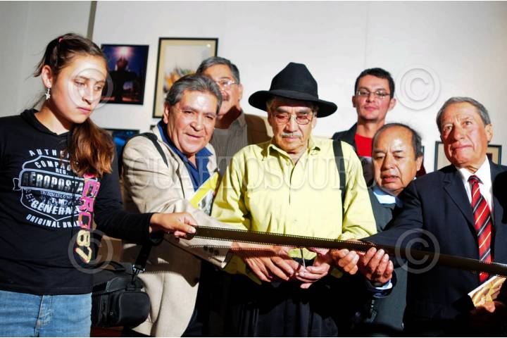 ZACATECAS, ZAC.13ABRIL2011.- Dentro del marco del Quinto Aniversario la Fototeca de Zacatecas Pedro Valtierra se inauguró esta noche la exposición colectiva de fotografía FOTÓGRAFOS DE PRENSA ZACATECANA, ENTRE DOS ÉPOCAS (1964–2011) integrada por 42 imágenes, de Carlos Rodríguez, José Campos, Juan A. Ramírez, Manuel Castaño, Manuel Cornejo, Rafael Ávalos y Rogelio Martínez. La muestra fue inaugurada por el Maestro Sergio Mayorga, subdirector de la Fototeca de Zacatecas, y los autores, acompañados por más de 200 personas entre periodistas, público en general y amigos. Previo al evento central los expositores platicaron sus experiencias como fotoperiodistas ante decenas de jóvenes aficionados a la creación de imágenes. Sergio Mayorga dijo “que la exposición es un homenaje que les hace la Fototeca, en reconocimiento a su labor y la agudeza crítica con la que han realizado, a lo largo de más de cuatro décadas de trabajo, un oficio que nos brinda un acervo visual de enorme valor histórico y la prueba de ello están colgados de estás paredes”. FOTO: GABY MARCIAL REYES/ESPECIAL CUARTOSCURO.COM