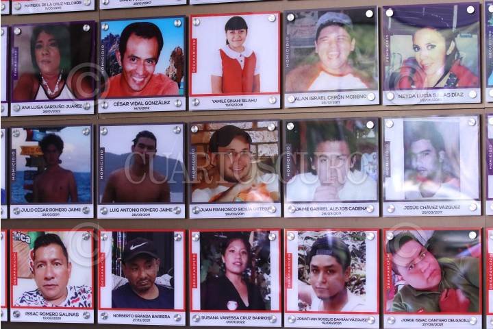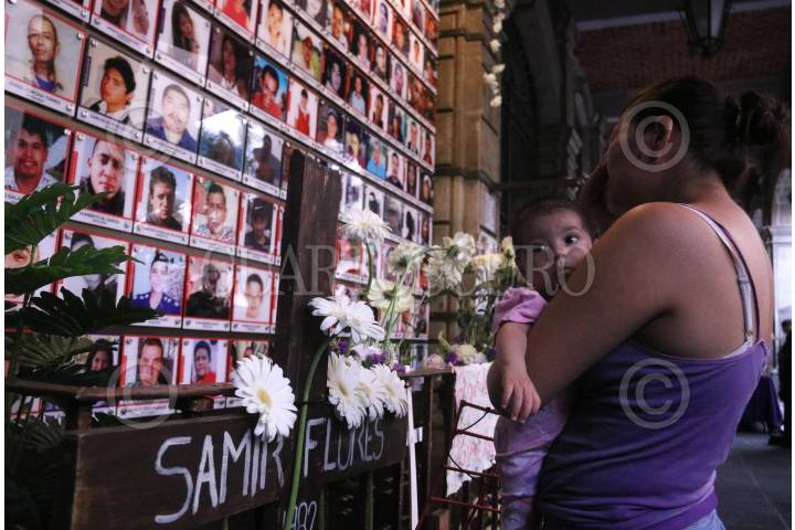 Fotos de víctimas de la violencia, al centro Juan Francisco Sicilia Ortega, hijo del activista y poeta Javier Sicilia quien fue asesinado el 28 de marzo del 2011 en Temixco, Morelos, junto a otras seis personas.