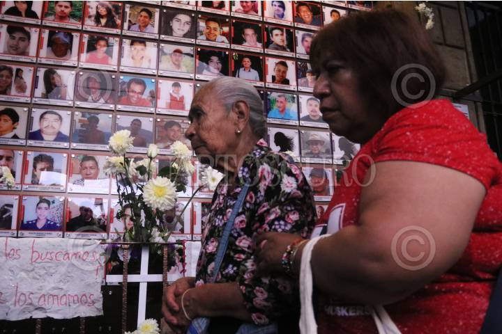 Familiares de desaparecidos conmemoraron el Día Estatal de la Victima en la ofrenda instalada en el portal del Palacio de Gobierno de Morelos.