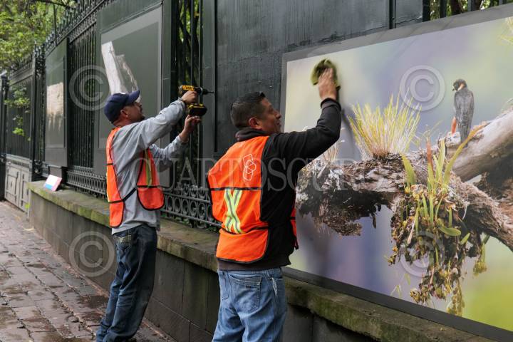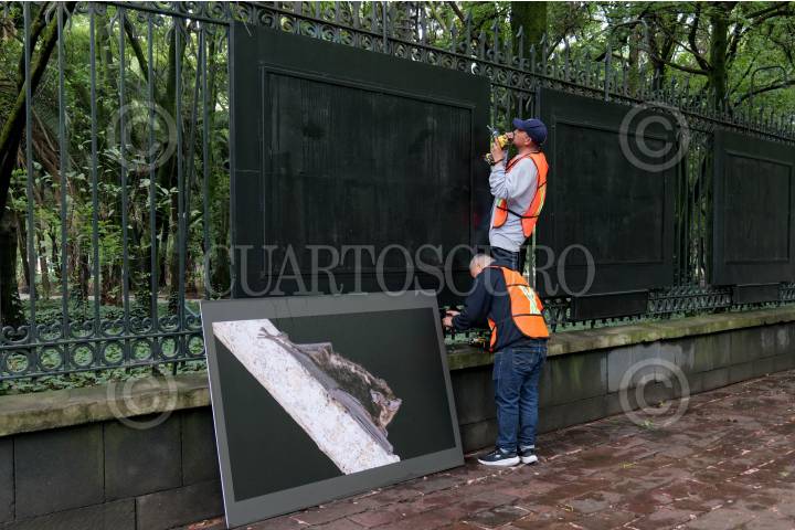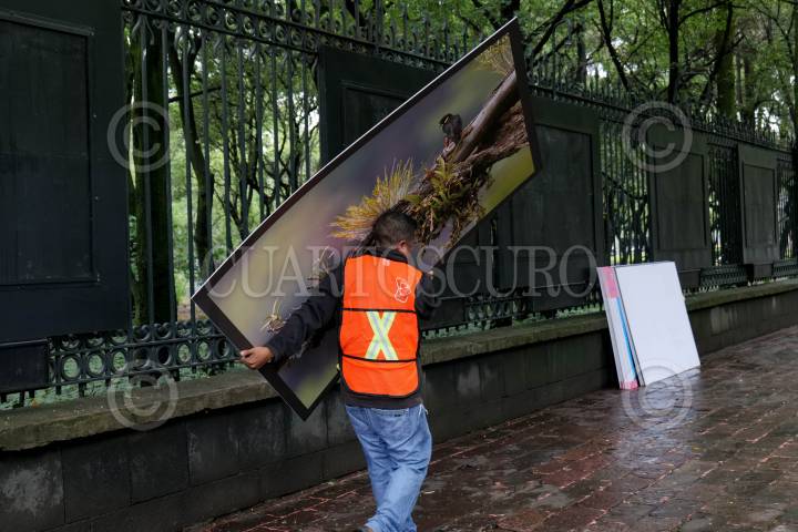 CIUDAD DE MÉXICO, 01JULIO2024.- Trabajadores quitaron las fotografías de una exposición de la Galería abierta Rejas de Chapultepec. FOTO: ALICE MORITZ/CUARTOSCURO.COM