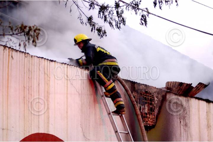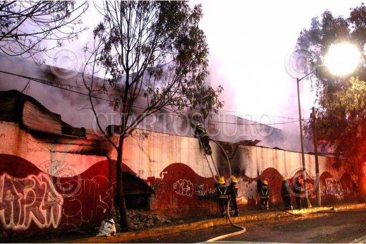 MÉXICO, D.F., 14DICIEMBRE2008.- Esta mañana se registro un incendio en una empresa de anaqueles metálicos, el siniestro se suscitó en la bodega en la que almacenaban pinturas y solventes, bomberos de la Delegación Azcapotzalco llegaron al lugar del incidente ubicado en Antiguo Camino a Guadalupe numero 99 H en la colonia San Marcos Azcapotzalco. FOTO: JULIETA MORA/CUARTOSCURO.COM
