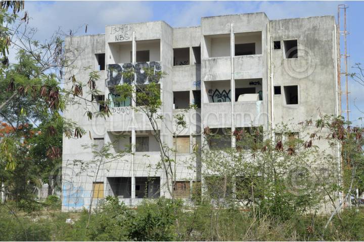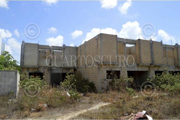 CANCUN, QUINTANA RO0, 14MAYO2015.-Cientos de familias asentadas en 12 fraccionamientos a los lados de la avenida 135, al poniente de la avenida Cancún, se enfrentan al recrudecimiento de la delincuencia que aprovecha como “nidos de rufianes” algunas de las cientos de casas abandonadas del quebrado fraccionamiento Villas del Arte y la ausencia total de policías de la Secretaría de Seguridad Pública y Tránsito del Ayuntamiento de Benito Juárez. Entre los fraccionamientos en conflicto se cuenta a Jardines del Sur, Villas Maya, Andalucía, Villas del Sur, Punta Estrella, Privadas Cuyagua, Jade, Bahía Dorada, Vitala, Villas del Arte, Vista Azul y villas marino. La falta de vigilancia policíaca en este sector ha derivado en una inseguridad se ha adueñado de la zona, aún cuando hay buen alumbrado público y los fraccionamiento se encuentran amurallados y con medidas de protección extras, como son rollos de alambre de púa o incluso con cercos superiores electrificados. El caso de Villas del Arte, que se convierte en un caso representativo, donde según los especialistas existen cerca de 38 mil viviendas deshabitadas, lo que es de alarmarse si se considera que en la cabecera municipal existe un padrón de aproximadamente 220 mil casas. FOTO: ELIZABETH RUIZ /CUARTOSCURO.COM