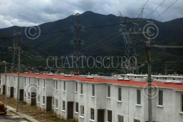 CHILPANCINGO, GUERRERO, 11JULIO2006.- Aspecto general del fraccionamiento de interes social "Las Torres" ubicado al sur de la ciudad de Chilpancingo, el cual fuera inaugurado en el sexenio del ex gobernador del estado Rene Juarez Cisneros y el que hasta la fecha se encuentra inconcluso en su construccion, ademas de no contar con los servicios basicos y estar edificado bajo antenas de energia de alta tension. FOTO: Oscar Alvarado/CUARTOSCURO.COM