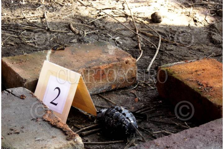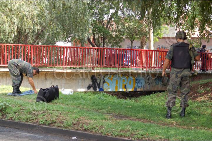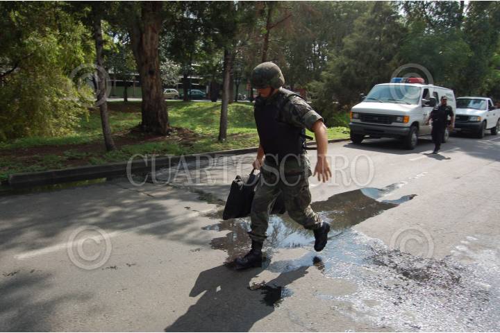 MORELIA, MICHOACÁN, 04AGOSTO2009.- Esta mañana fue encontrada una granada de fragmentación activada (sin espoleta) por personal de aseo público en las inmediaciones de un centro comercial en la colonia Felix Ireta de Morelia, al lugar arribaron elementos de diversas corporaciones policíacas y del Ejército Mexicano especialistas en explosivos. FOTO: LEOVIGILDO GONZÁLEZ/CUARTOSCURO.COM