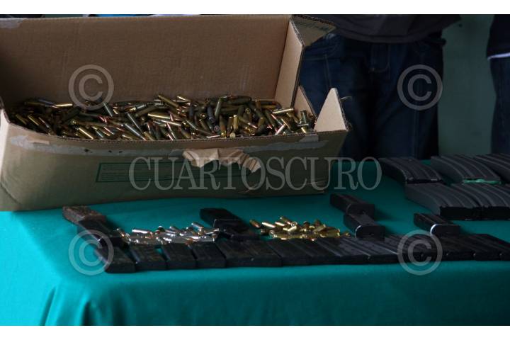VILLAHERMOSA TABASCO 23FEBRERO2009.- Parte del armamento encontrado en poder de presuntos integrantes la célula “Zeta” comandada por “El Conejo” Son granadas de fragmentación armas largas y cortas. FOTO: MARCO POLO GUZMÁN HERNÁNDEZ/CUARTOSCURO.COM