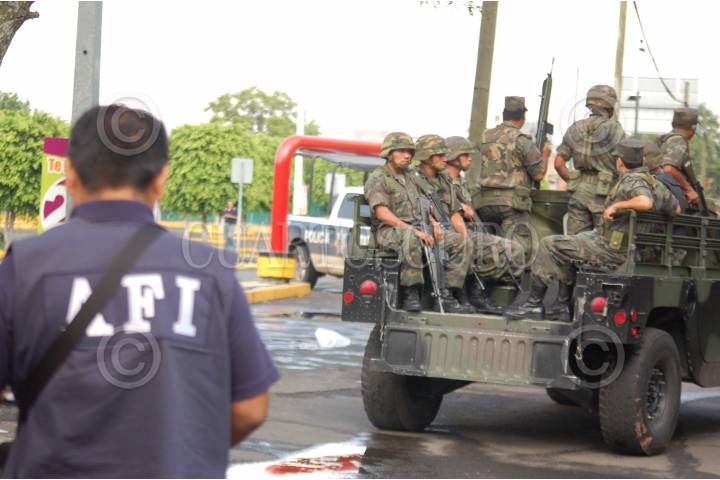 COMALCALCO, TABASCO, 22FEBRERO2009.- Dos soldados gravemente heridos se debaten entre la vida y muerte arroja el enfrentamiento que se registró entre presuntos zetas contra elementos de la Defensa Nacional adscritos al 17 y 57 Batallón de Infantería los hechos acontecieron sobre la avenida principal cerca de la gasolineria La Estrella, cuando los elementos castrense realizaban un recorrido de vigilancia y fueron atacados sorpresivamente con granadas de fragmentación y armas de fuego de alto calibre. FOTO: MARCO POLO GUZMAN/CUARTOSCURO.COM