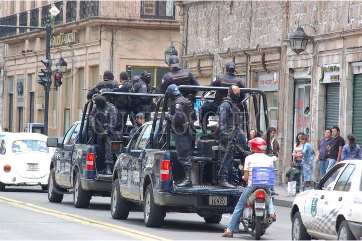MORELIA, MICHOACAN, 12DICIEMBRE2009.- Elementos de la Policía Federal aumentaron los patrullajes en la ciudad de Morelia, tras los múltiples ataques en contra de la corporación policíaca, desde el pasado miércoles son cuatro días seguidos de violencia en el estado de Michoacán, esté último se registró en la ciudad de Uruapan esta madrugada en donde incluso se utilizaron granadas de fragmentación que dejó a tres policías gravemente lesionados. FOTO: LEOVIGILDO GONZALEZ/CUARTOSCURO.COM