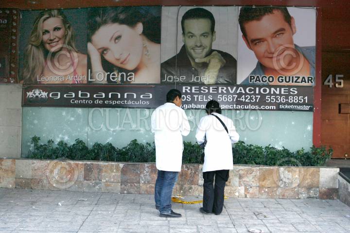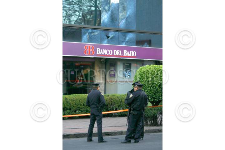 MÉXICO, D.F., 25ABRIL2010.- Dos granadas de fragmentación, estallaron en el exterior del centro de espectáculos “Gabanna” ubicado en Insurgentes Sur 9451 esquina con el Eje 5 Eugenia, colonia Ciudad de los Deportes, perímetro de la Delegación Benito Juárez. La onda expansiva causo daños en los cristales superiores de la sucursal Banco del Bajío, ubicado a un costado de dicho centro del espectáculo. Peritos de la Procuraduría del Distrito Federal en coordinación con elementos de grupo Geri y Fuerza de tarea, acordonaron el lugar para tomar conocimiento de los hechos y realizar los peritajes de ley. De dicho atentado, no se registraron personas lesionadas. FOTO: LUIS CRABAYO/CUARTOSCURO.COM