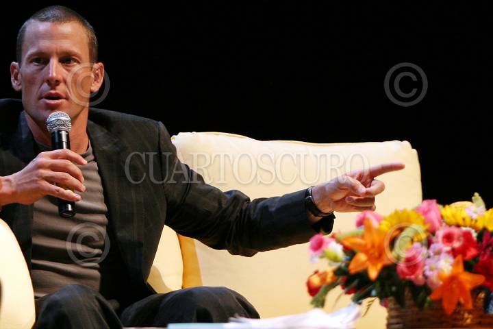 MEXICO, DF 07SEPTIEMBRE2005.- El ciclista 5 veces campeón del Tour de Francia, Lance Armstrong, asistió como invitado al ciclo de conferencias que la Fundación Telmex, ofreció para miles de estudiantes de nivel superior en el auditorio nacional. FOTO: Miguel Dimayuga/CUARTOSCURO.COM