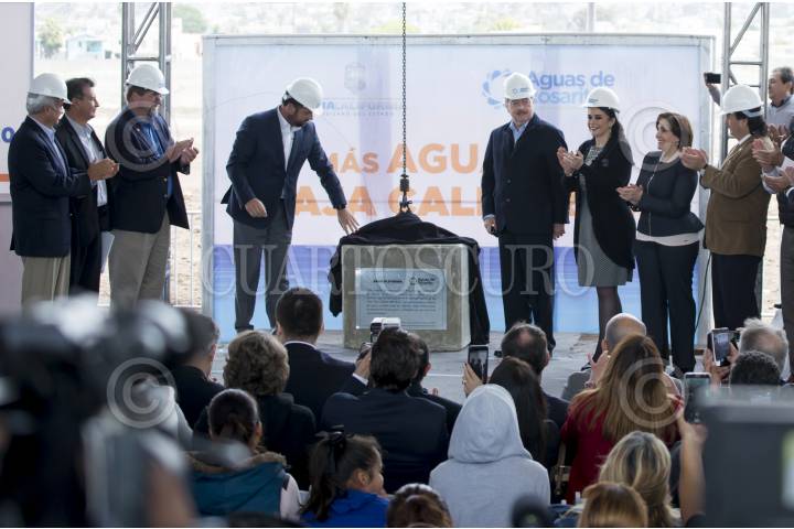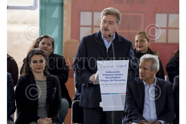 ROSARITO, BAJA CALIFORNIA, 23MARZO2018.- El gobernador de Baja California, Francisco Vega de la Madrid, encabezó la colocación de la primera piedra de lo que será la planta desalinizadora considerada la más grande de Ámerica Latina, misma que se construiría en Playas de Rosarito en un periodo de tres años, y para cual se investiran 465.1 millones de dólares. FOTO: CUARTOSCURO.COM