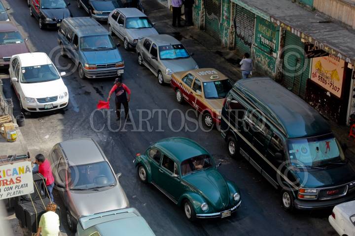 MÉXICO, D.F., 08DICIEMBRE2010.- Un franelero se gana la vida estacionando carros en una de las calles del centro histórico en ambas aceras donde es el único encargado de dicho trabajo apartando los espacios vacíos con botes y cajas de madera, a demás de que al salir un vehiculo, obstruye la vialidad dándole preferencia al estacionado. FOTO: ENRIQUE ORDÓÑEZ/CUARTOSCURO.COM