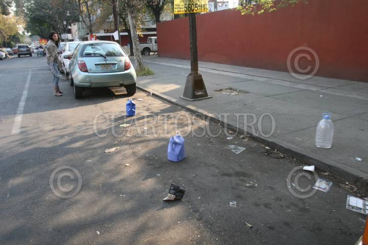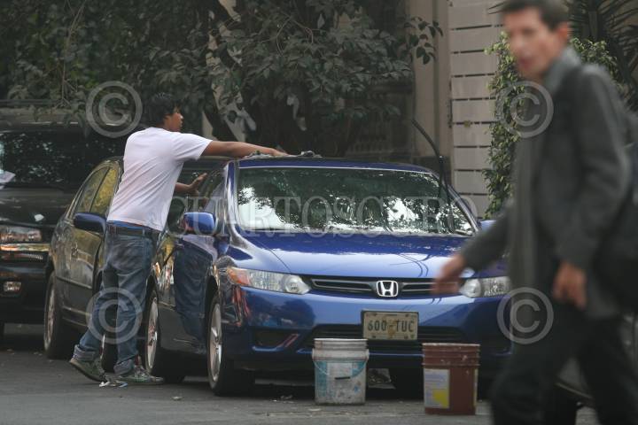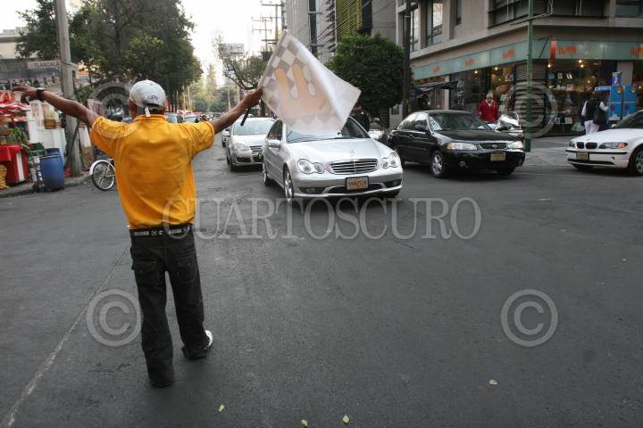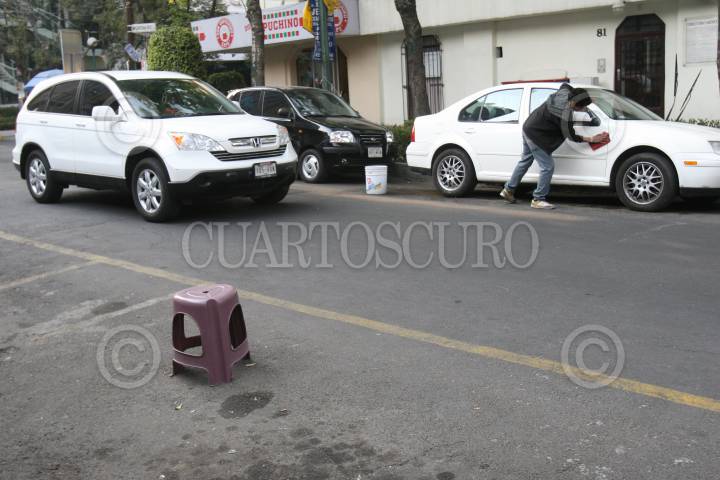 MÉXICO, D.F., 17DICIEMBRE2010.- En colonias como Roma y Condesa, franeleros trabajan apartando lugares y lavando coches, con lo cual se ganan unas monedas. FOTO: ISAAC ESQUIVEL/CUARTOSCURO.COM