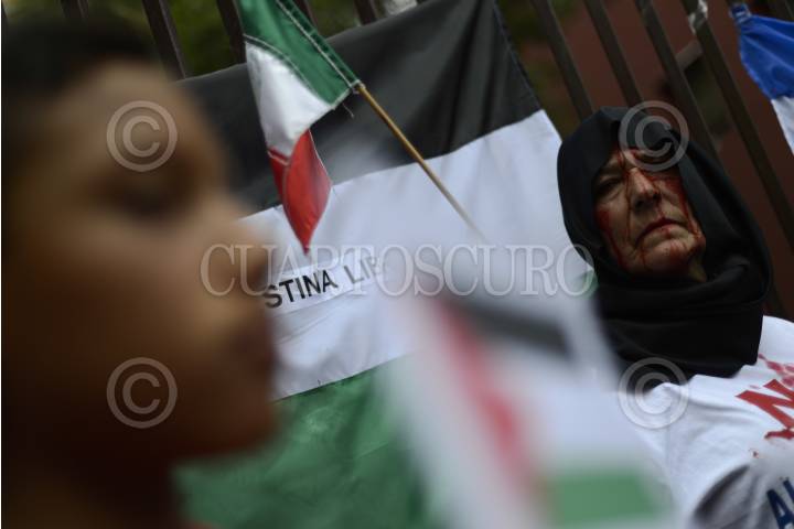MÉXICO, D.F., 11JULIO2014.- Organizaciones sociales, así como también ciudadanos civiles, se manifestaron a las afueras de la Secretaría de Relaciones Exteriores, en protesta por los recientes bombardeos y ocupaciones por parte del estado de Israel en la Franja de Gaza. FOTO: PEDRO ANZA /CUARTOSCURO.COM
