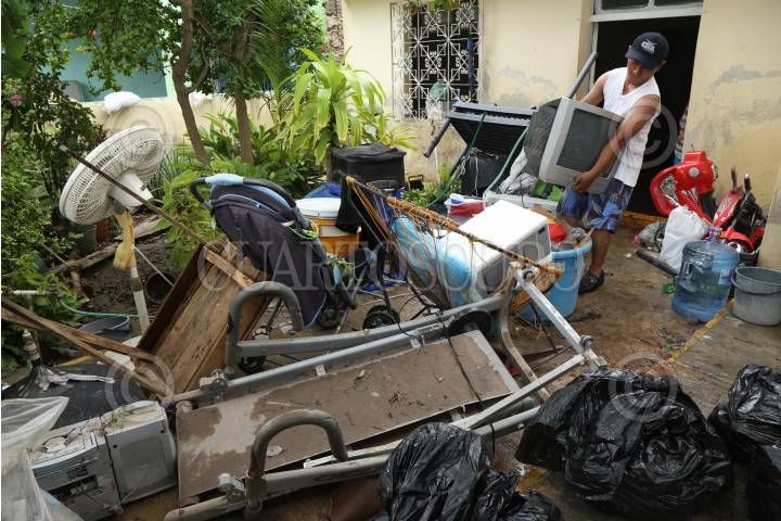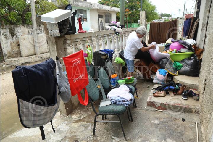 CAMPECHE, CAMPECHE, 09AGOSTO2017.- La tormenta tropical "Franklin" se encuentra en fase de alejamiento de la Península de Yucatán, por lo que ya no representa peligro para la entidad. Tras su paso, decenas de familias afectadas realizan labores de limpieza a sus hogares con la esperanza de recuperar algunas de sus pertenencias. Hasta la tarde de hoy martes, el reporte del Centro Hidrometeorológico Regional de Mérida (XHRM) indicó que la tormenta registró “una ligera disminución en sus vientos máximos sostenidos y a la 13:15 horas (de hoy martes) el centro del sistema ya se ubicaba a 65 kilómetros al este de San Francisco de Campeche”. FOTO: MARTÍN ZETINA /CUARTOSCURO.COM