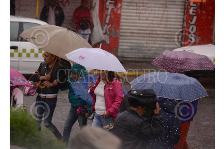TOLUCA, ESTADO DE MÉXICO, 10AGOSTO2017.- Con paraguas y chamarras salieron los habitantes de Toluca al registrarse tormentas intensas debido a la tormenta tropical Franklin, de acuerdo a CONAGUA las lluvias continuarán. FOTO: ARTEMIO GUERRA BAZ / CUARTOSCURO.COM