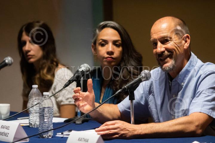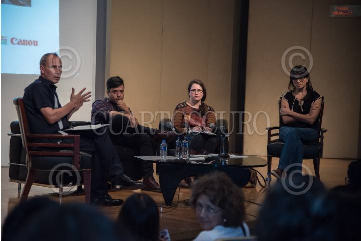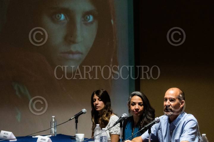 CIUDAD DE MÉXICO, 22SEPTIEMBRE2018.- El fotógrafo Noel Cruz, el reportero Carlos acuña, y la fotógrafa Consuelo Pagaza durante el conversatorio “La Discriminación a través de la lente” como parte de las actividades de clausura de la exhibición World Press Photo 2018, llevada a cabo en las instalaciones del Museo Franz Mayer. FOTO: MARIO JASSO / CUARTOSCURO.COM