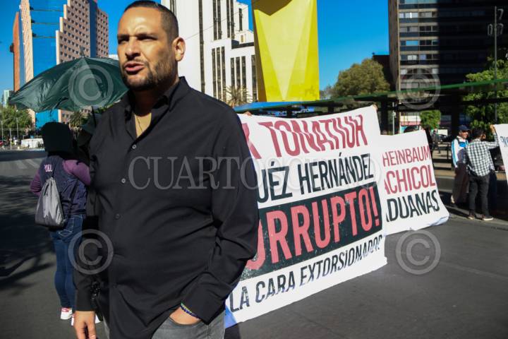 CIUDAD DE MÉXICO. 14ABRIL2025.- Durante unas horas decenas de defraudados por directivos de la Agencia Nacional de Aduanas con “Venta de Supuestas Plazas”, cerraron avenida Reforma para pedir el despido de su director Alejandro Tonatiuh Márquez, el líder Rodrigo Fragoso fue recibido para analizar su demanda. FOTO: VICTORIA VALTIERRA/CUARTOSCURO.COM