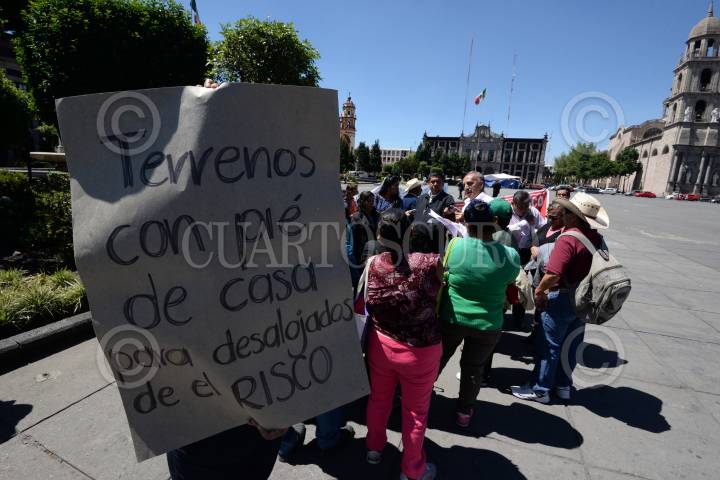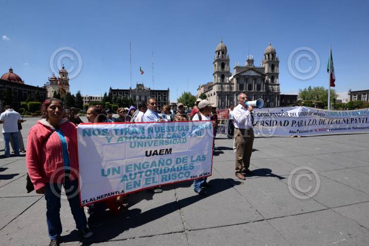 TOLUCA, ESTADO DE MÉXICO, 21JUNIO2017.- Ocupantes del predio El Risco, en Tlalnepantla se manifestaron frente a Palacio de Gobierno, para exigir la intervención de las autoridades estatales para poder regresar al lugar en donde vivían, y del cual fueron desalojados al ser defraudados en la compra de más de 300 lotes. FOTO: ARTEMIO GUERRA BAZ /CUARTOSCURO.COM