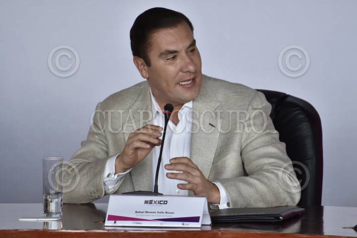 CUERNAVACA, MORELOS, 24AGOSTO2017.- Rafael Moreno Valle, ex Gobernador del Estado de Puebla, durante su partipación de la mesa "Gobierno de Coalición:¿Cambio de Régimen en México?" como parte del Coloquio "La transición posible" celebrado en el Centro Cultural Teopanzolco. En el foro se discutieron los elementos clave para la elección del candidato del Frente Amplio Democrático rumbo a las elecciones electorales de 2018. FOTO: MARIO JASSO /CUARTOSCURO.COM